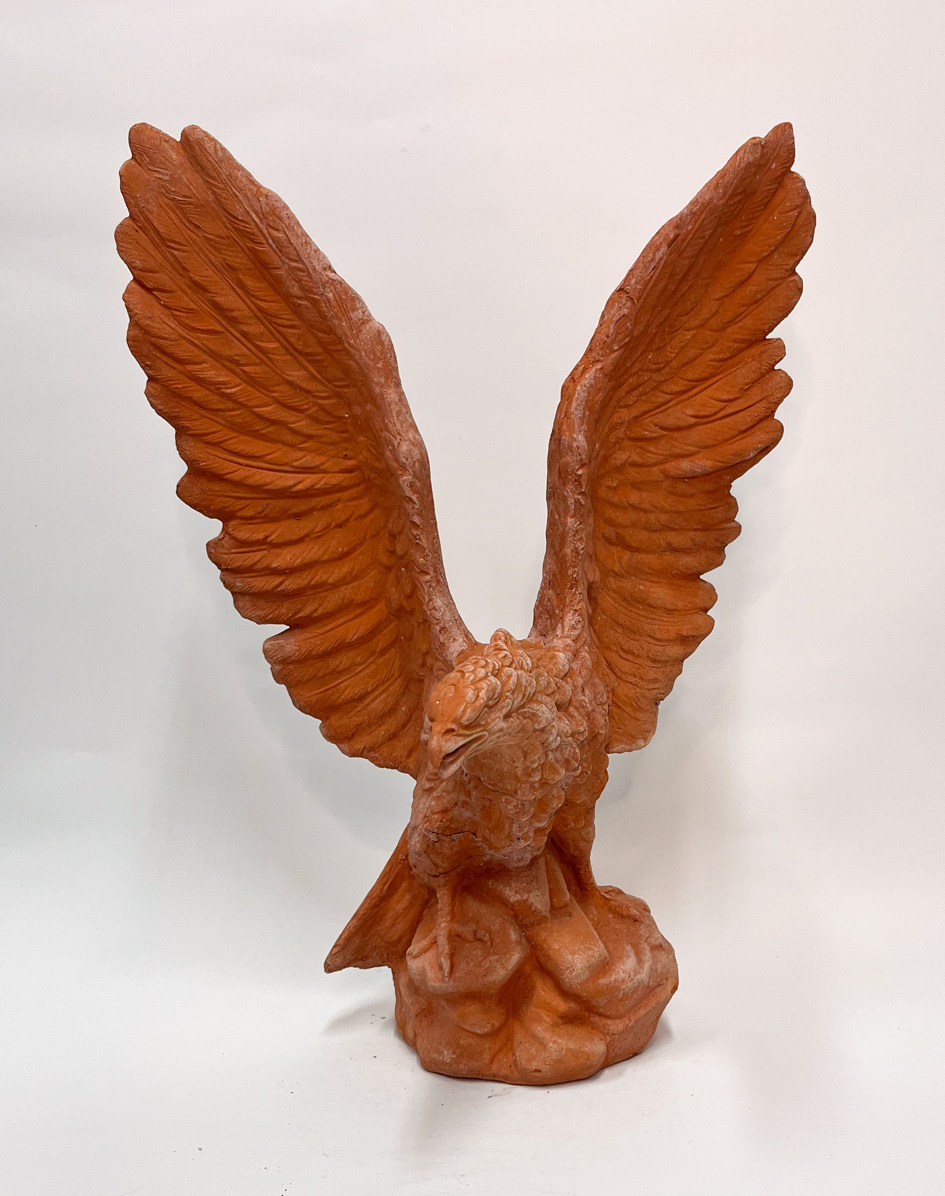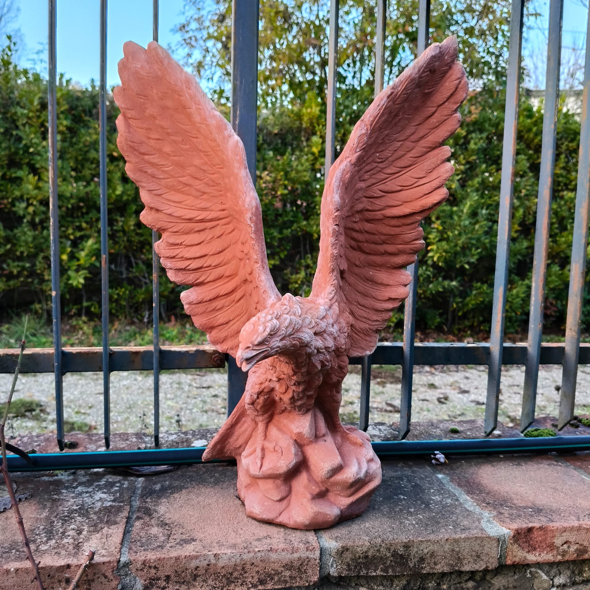 Tämä pieni Imprunetan terrakottakotka on näyttävä ja huolellisesti käsintehty, se tuo tilaan voimaa ja klassista symboliikkaa. Hienosti muotoillut yksityiskohdat korostuvat laadukkaassa terrakotassa, joka tunnetaan kestävyydestään ja ajattomuudestaan.