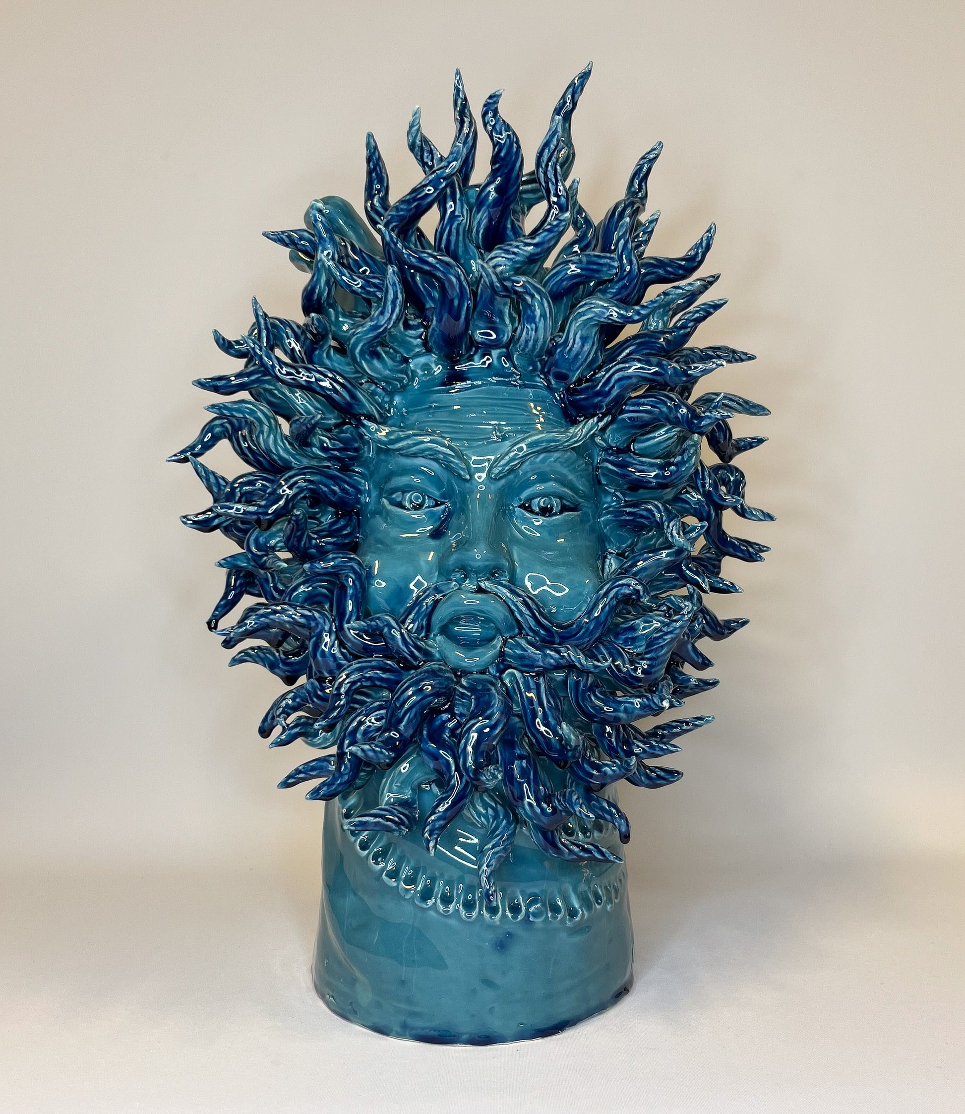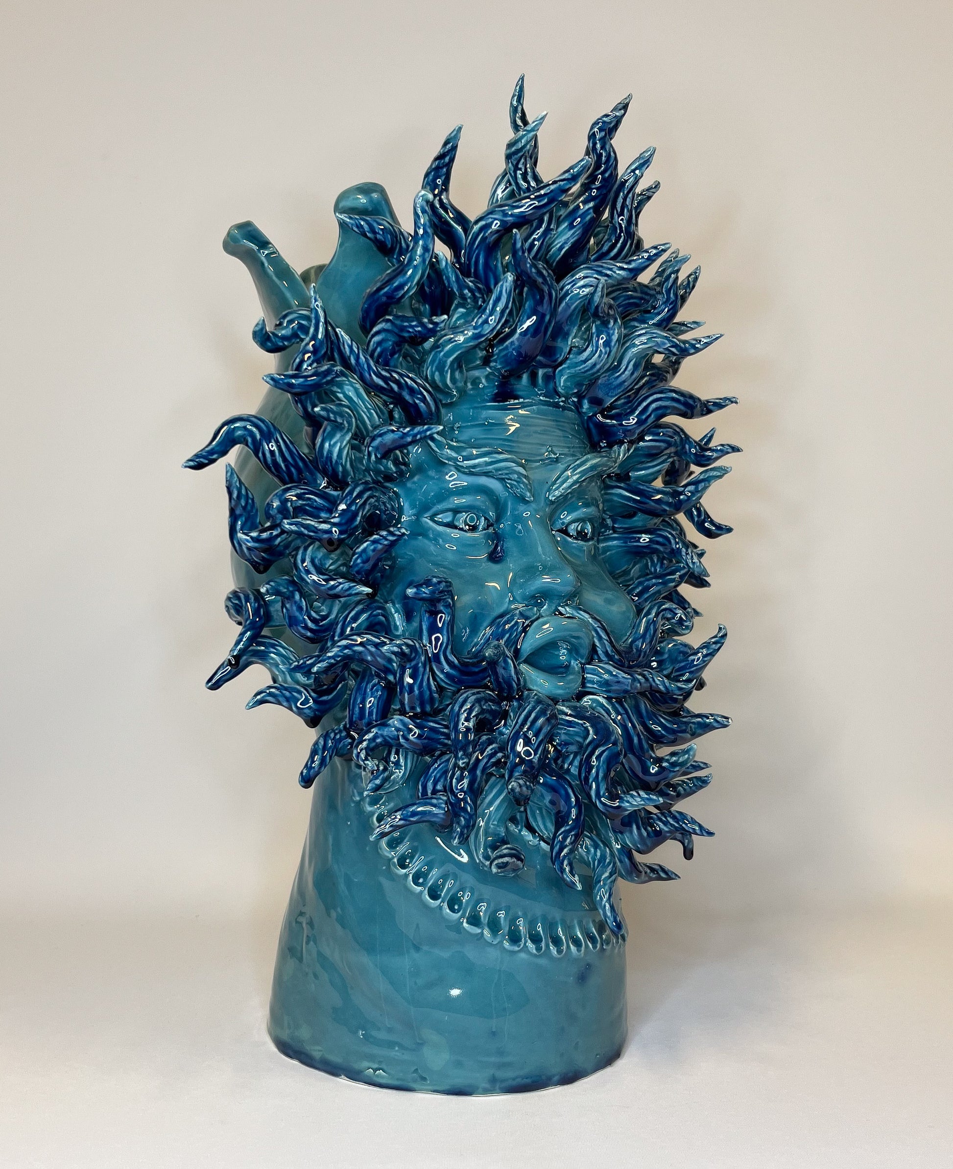 Eolo on muinainen tuulten haltija, joka on vangittu tähän rauhalliseen ja voimakkaaseen keraamiseen vaasiin. Hänen ilmeensä heijastaa liikettä, vapautta ja taivaan alati muuttuvia energioita, ollen luonnonvoiman ja harmonian ikoninen symboli.