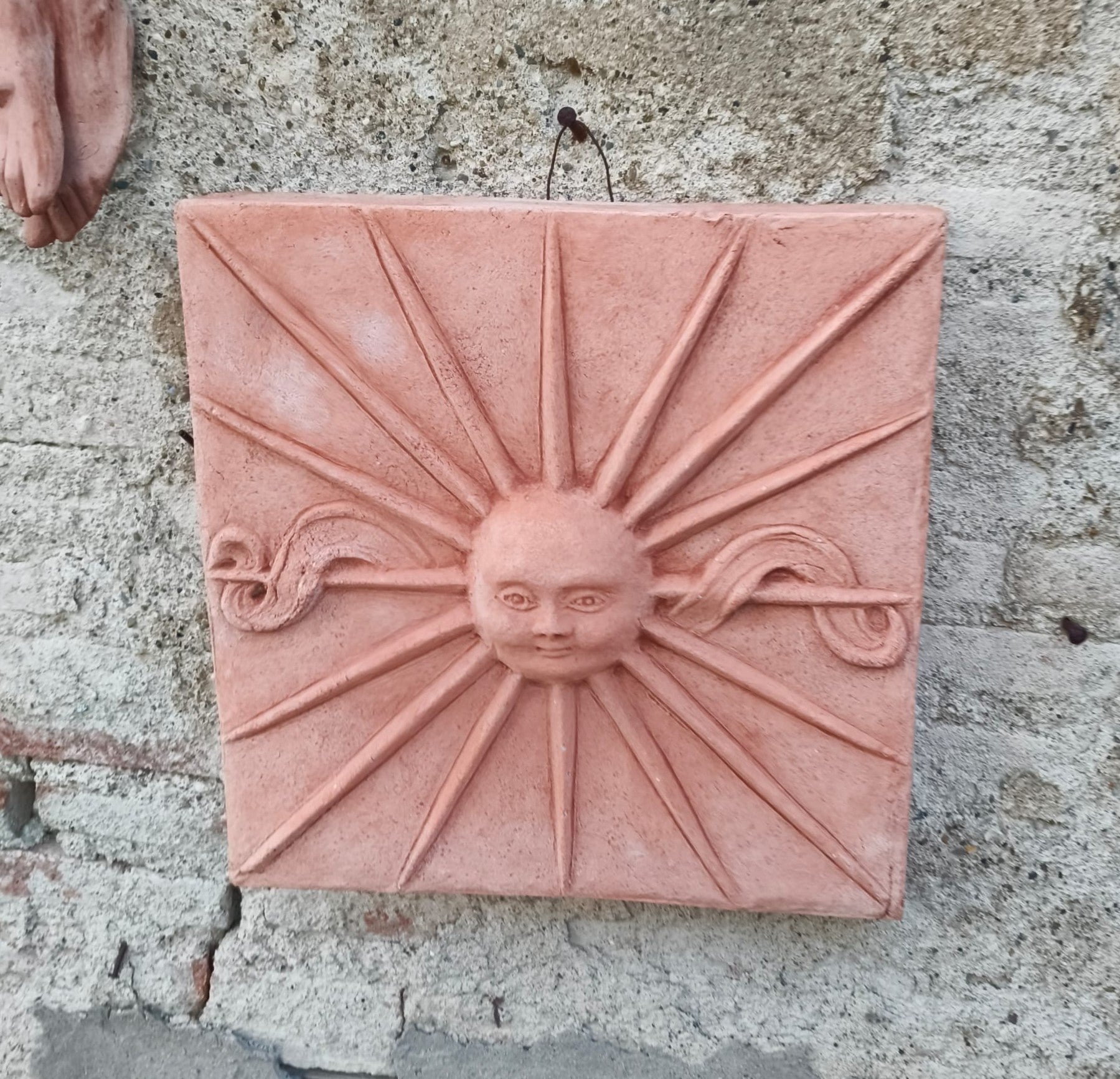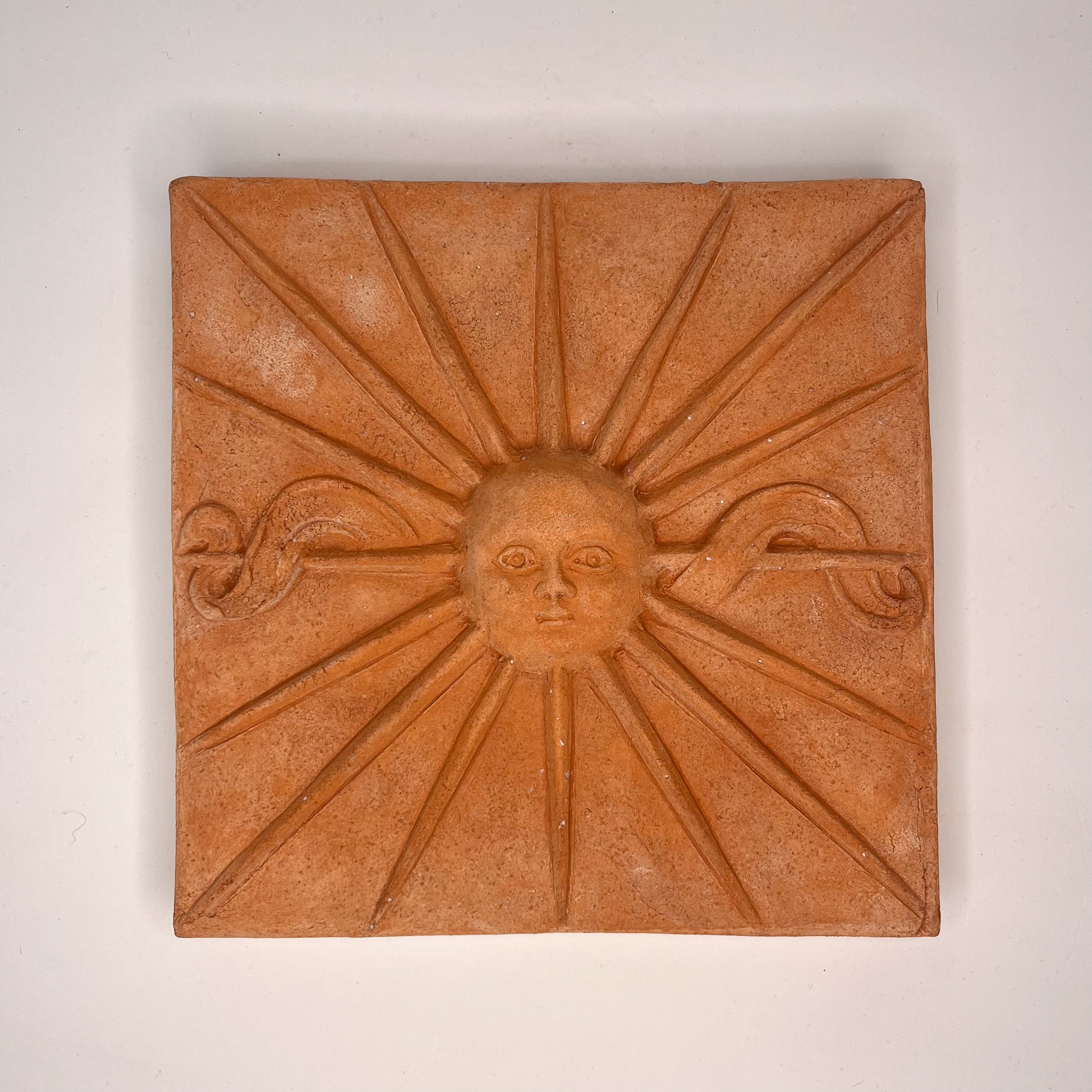 Terrakotta-aurinko seinäpaneeli.